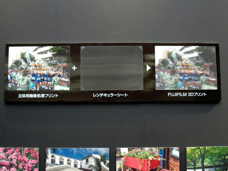 写真の上にレンチキュラーシートを重ね合わせて3D画像を表現する方式