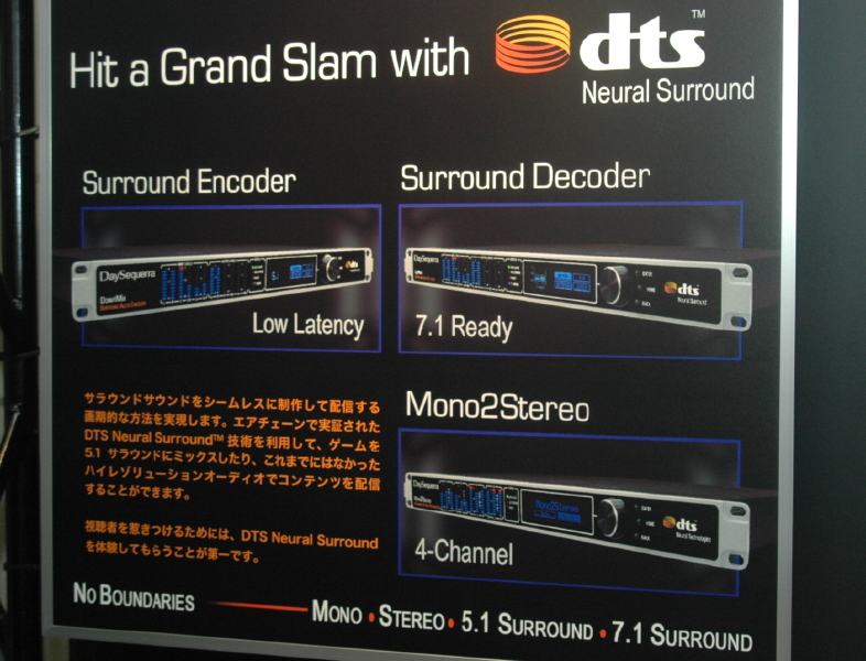 HOME > ニュース > AV&ホームシアターニュース セミナーでは当日しか視聴できないデモディスクも再生 <AES 2009>DTS、放送用サラウンド技術「DTS Neural Surround」を紹介 − 25日にはプロダクトセミナーも実施 Phile-web編集部 2009年07月23日 前の写真へ 次の写真へ DTS Neural Surroundの紹介パネル 前の写真へ 次の写真へ この写真の記事へ 関連リンク AES 東京コンベンション 2009 DTSの最新情報を網羅!「DTS NOWサラウンド最前線」 dts Japan