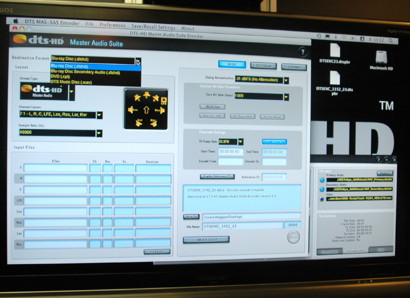 HOME > ニュース > AV&ホームシアターニュース セミナーでは当日しか視聴できないデモディスクも再生 <AES 2009>DTS、放送用サラウンド技術「DTS Neural Surround」を紹介 − 25日にはプロダクトセミナーも実施 Phile-web編集部 2009年07月23日 前の写真へ 次の写真へ DTS-HD Master Audioストリームの作成も可能 前の写真へ 次の写真へ この写真の記事へ 関連リンク AES 東京コンベンション 2009 DTSの最新情報を網羅!「DTS NOWサラウンド最前線」 dts Japan