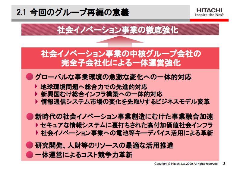 HOME > ニュース > AV&ホームシアターニュース 社会インフラ事業を強化 日立製作所、マクセルなど上場5社を完全子会社化 Phile-web編集部 2009年07月28日 前の写真へ 次の写真へ グループを再編する意義 前の写真へ 次の写真へ この写真の記事へ 関連リンク (株)日立製作所 グループ再編に関するニュースリリース 第1四半期連結業績に関するニュースリリース