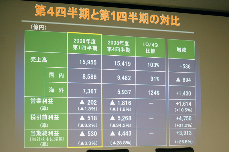 2008年度4Qとの比較。前期に比べ回復したことを訴求する