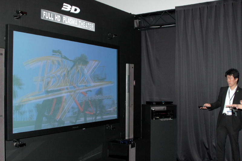 本日記者向けにデモを行った、103型プラズマテレビを使ったフルHD 3Dシステム