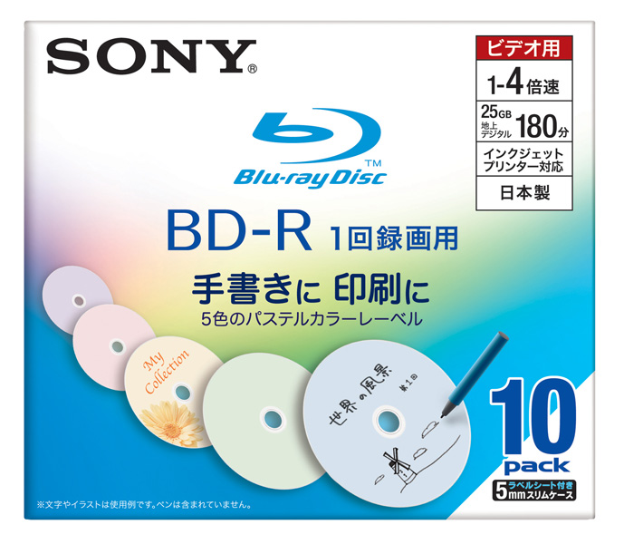 ソニー、「パステルカラーレーベル」採用の録画用BDディスクを発売