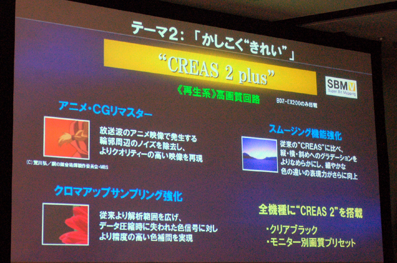 HOME > ニュース > AV&ホームシアターニュース インテリジェントエンコーダーや「CREAS 2 plus」搭載など録再機能を向上 ソニー、新BDレコーダー/プレーヤーの発表会を開催 − キーワードは「かんたん・きれい・つながる」 Phile-web編集部 2009年08月26日 前の写真へ 次の写真へ EX200では再生能力を強化する機能を追加している 前の写真へ 次の写真へ この写真の記事へ 関連リンク BDレコーダー5機種のニュースリリース BDプレーヤーのニュースリリース