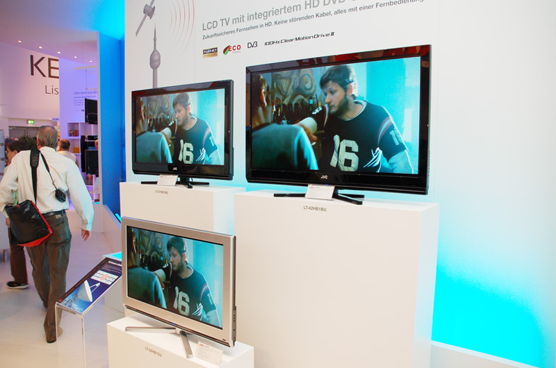 HOME > ニュース > AV&ホームシアターニュース IFA2009レポート ビクターが「薄さ6.4mm」の32V型“Xiview”を公開 − 新極薄ムービー“PICSIO”も登場 Phile-web編集部・山本 2009年09月07日 前の写真へ 次の写真へ ヨーロッパ仕様のチューナー内蔵薄型テレビ製品群 前の写真へ 次の写真へ この写真の記事へ 関連リンク IFA2009日本語サイト IFA2009ホームページ(英語)