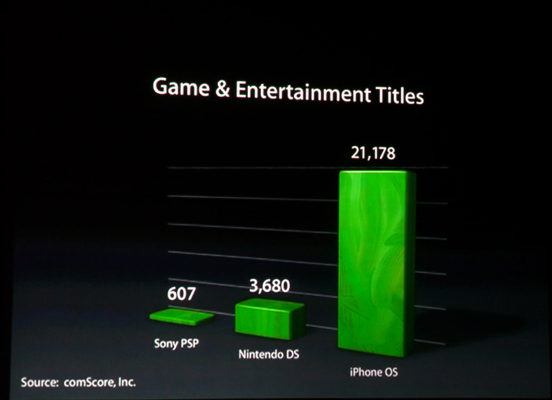 iPhone OS用ゲーム&エンターテインメントのタイトル数は21,178。ただし無料ゲームなども大量に含まれている