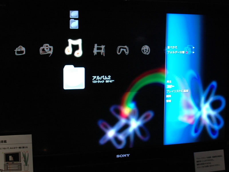 PS3内の楽曲を転送可能。PS3コントローラーの□ボタンを押すことでジャンル別やアルファベット順などの楽曲ソート方法の変更もできる