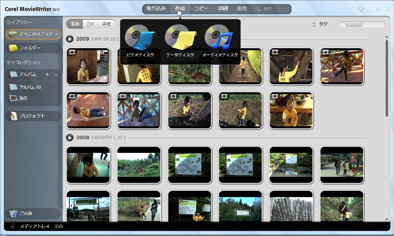 Corel MovieWriterのディスク作成画面