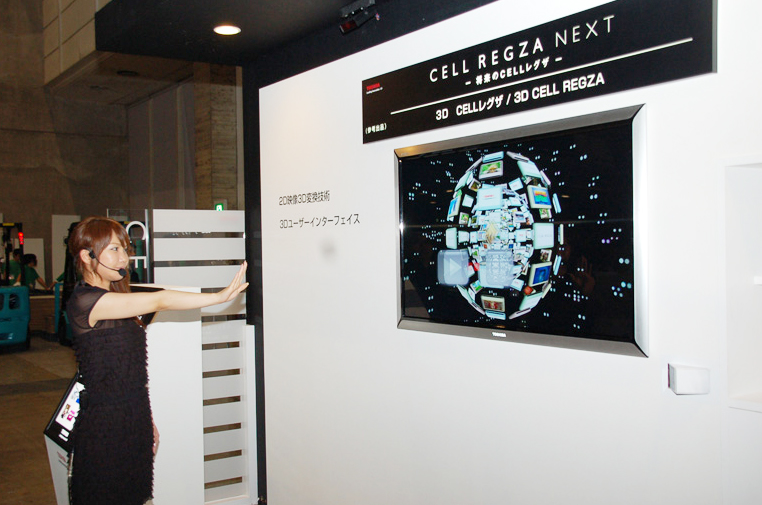 HOME > ニュース > AV&ホームシアターニュース CEATEC JAPANのブースを一足先に開放 東芝、3Dや4K2K対応など“CELL REGZA”の将来形を展示/動画で紹介!3DハンドジェスチャーUIのデモ Phile-web編集部 2009年10月05日 前の写真へ 次の写真へ ハンドジェスチャーUIのデモ 前の写真へ 次の写真へ この写真の記事へ 関連リンク 東芝 レグザのホームページ Phile-webニュース【東芝が55V型“CELL REGZA”「55X1」を12月上旬に発売 − 価格は100万円前後】