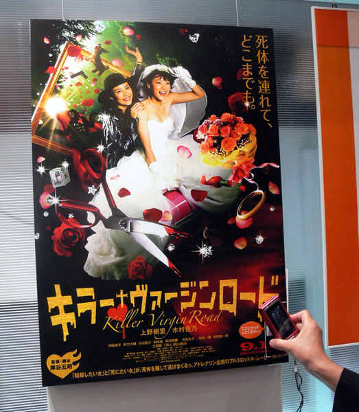 KDDIブースにもデモスペースが。ポスターにケータイをかざすとトレーラー映像がダウンロードされる