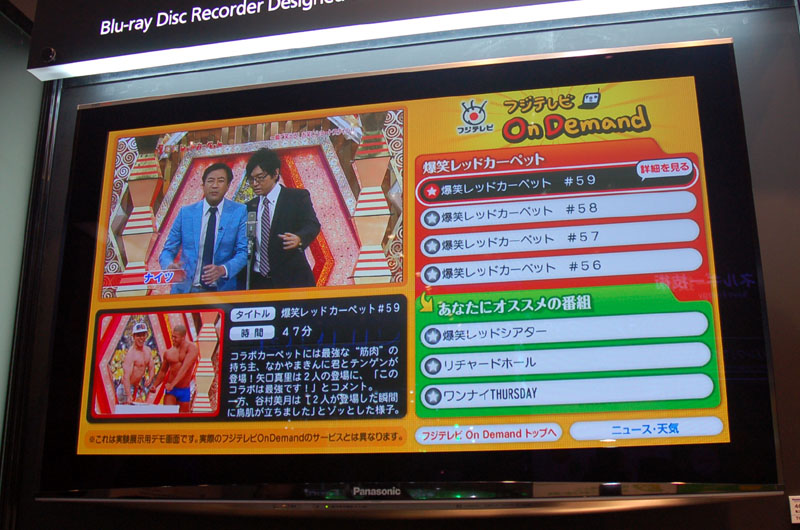 HOME > ニュース > AV&ホームシアターニュース CEATEC JAPAN 2009レポート パナソニック、3D再生システムを大々的に展示 − 50V型PDPシステムや「AVATAR」上映ブースも Phile-web編集部 2009年10月06日 前の写真へ 次の写真へ テレビを見ながらネットで放送をDLできる技術参考展示 前の写真へ 次の写真へ この写真の記事へ 関連リンク CEATEC JAPAN 2009 CEATEC JAPAN 2009 レポート一覧