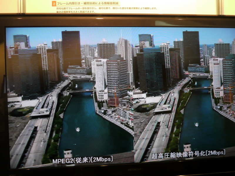 HOME > ニュース > AV&ホームシアターニュース CEATEC JAPAN 2009レポート 日立、“Wooo”の魅力を強力アピール − 実用間近の超解像やLEDバックライト技術も Phile-web編集部 2009年10月06日 前の写真へ 次の写真へ そのほか、同等の画質のMPEG-4 AVCに比べて約3倍程度の長時間録画が行える新たな動画圧縮技術のデモも行われていた 前の写真へ 次の写真へ この写真の記事へ 関連リンク CEATEC JAPAN 2009 CEATEC JAPAN 2009 レポート一覧
