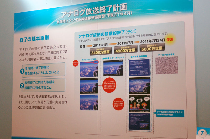 HOME > ニュース > AV&ホームシアターニュース CEATEC JAPAN 2009レポート NHK/JEITAブースで"放送の過去から近未来"を総覧 − 3DシアターやスーパーHDシアターも用意 Phile-web編集部 2009年10月06日 前の写真へ 次の写真へ 2011年のアナログ停波を再度アナウンス 前の写真へ 次の写真へ この写真の記事へ 関連リンク CEATEC JAPAN 2009 CEATEC JAPAN 2009 レポート一覧