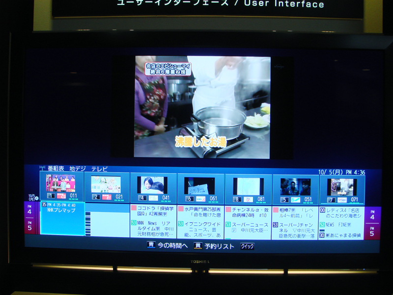 HOME > ニュース > AV&ホームシアターニュース CEATEC JAPAN 2009レポート CELL REGZAの録画機能を速攻レビュー − ケースイが考察する“レコーダーテレビ”「55X1」の魅力 鈴木桂水 2009年10月07日 前の写真へ 次の写真へ 便利なミニ番組表は放送中の画面を表示しながら選択できる 前の写真へ 次の写真へ この写真の記事へ 関連リンク 東芝「55X1」スペシャルサイト CEATEC JAPAN 2009