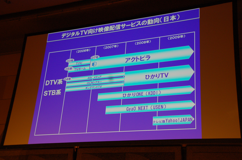 HOME > ニュース > AV&ホームシアターニュース CEATEC JAPAN 2009レポート アクトビラとデジタルTVを中心としたユビキタスネットワークの実現へ − 木村社長キーノートスピーチ Phile-web編集部 2009年10月09日 前の写真へ 次の写真へ IPTVサービスの国内動向 前の写真へ 次の写真へ この写真の記事へ 関連リンク CEATEC JAPAN 2009 CEATEC JAPAN 2009 レポート一覧 アクトビラ