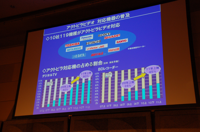 HOME > ニュース > AV&ホームシアターニュース CEATEC JAPAN 2009レポート アクトビラとデジタルTVを中心としたユビキタスネットワークの実現へ − 木村社長キーノートスピーチ Phile-web編集部 2009年10月09日 前の写真へ 次の写真へ 対応機器の普及状況 前の写真へ 次の写真へ この写真の記事へ 関連リンク CEATEC JAPAN 2009 CEATEC JAPAN 2009 レポート一覧 アクトビラ