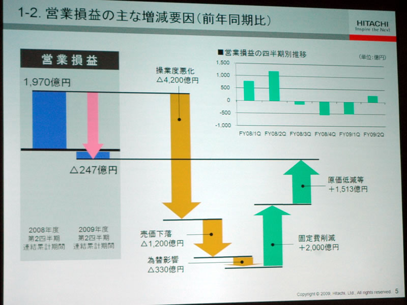 日立、2Q連結決算を発表 - テレビ事業はエコポイント効果などで損益大幅改善
