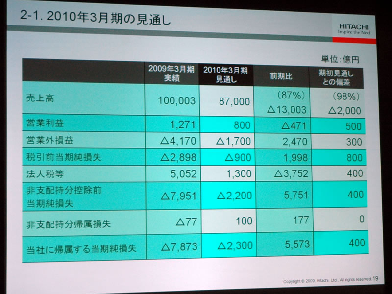日立、2Q連結決算を発表 - テレビ事業はエコポイント効果などで損益大幅改善