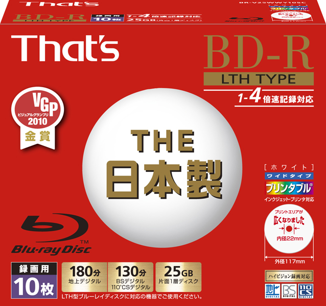 - 【CEATEC】録画用・BD-R LTH TYPEの“1〜6倍速”対応ディスク、ビクターとTHAT'Sが参考展示 2010/10/05