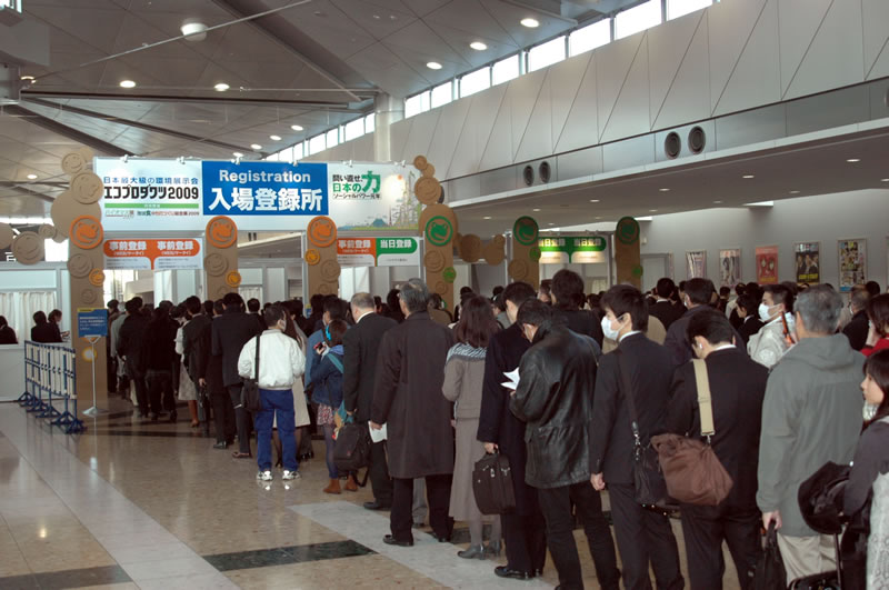 午後2時過ぎには入場口に長い列が。エコへの関心の高まりを感じさせる