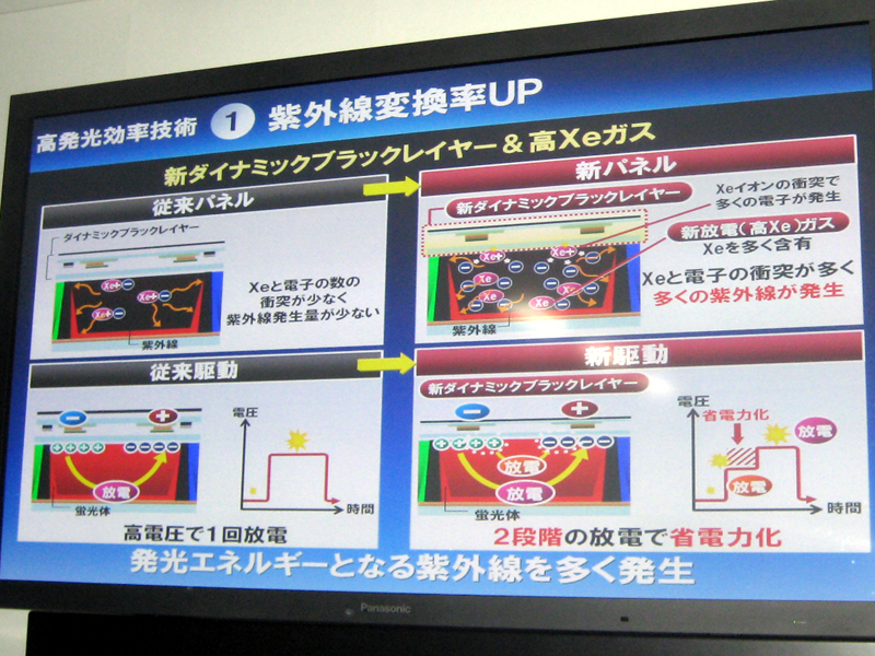 HOME > ニュース > AV&ホームシアターニュース CESと同時に発表 パナソニック、152V型3D PDPを日本でも披露 − 新PDPや3Dカメラなども登場 ファイル・ウェブ編集部 2010年01月07日 前の写真へ 次の写真へ Xeを多く含む放電ガスを使用し、発光エネルギーとなる紫外線を多く発生させる 前の写真へ 次の写真へ この写真の記事へ 関連リンク 152V型PDPのニュースリリース 発光効率を高めた新パネルのニュースリリース 一体型二眼式3Dカメラレコーダーのニュースリリース