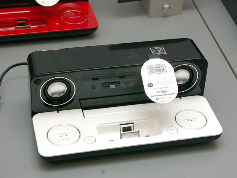 スピーカーやコンポなどの各種iPodドック搭載製品も展示