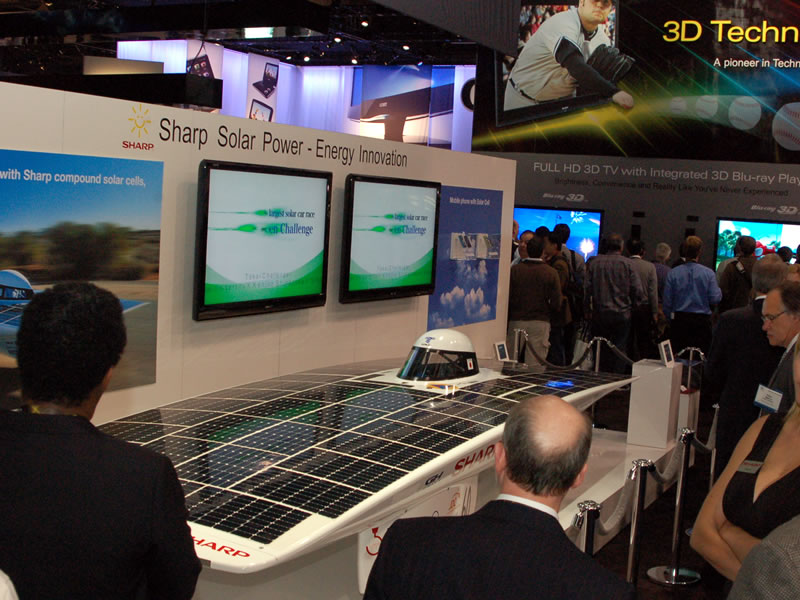 HOME > ニュース > AV&ホームシアターニュース 製品化時期は“未定だが、Readyな状態” 【CES】シャープ、BD一体型の3D液晶テレビを参考出展 - BDプレーヤーやフルHDプロジェクターも登場 ファイル・ウェブ編集部:小野佳希 2010年01月08日 前の写真へ ブース入口には同社がソーラーパネルを提供している東海大学のソーラーカーの姿も 前の写真へ この写真の記事へ 関連リンク シャープ 「2010 International CES」の関連記事