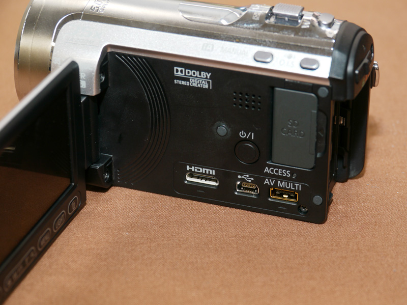 HDC-TM60の液晶パネル内側にはSDカードスロットやHDMI端子を搭載する