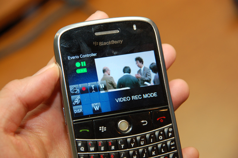 HOME > ニュース > AV&ホームシアターニュース フルHDビデオカメラにWメモリー機が充実 ビクター、裏面照射型「B.S.I. CMOSセンサー」搭載のビデオカメラ2機種 − “Everio”最上位「HM1」とBluetooth対応「HM570」 ファイル・ウェブ編集部 2010年01月14日 前の写真へ 次の写真へ ブラックベリーの対応するスマートフォンからHM570の簡易な操作が行える 前の写真へ 次の写真へ この写真の記事へ 関連リンク ビクターのホームページ Everioの製品情報