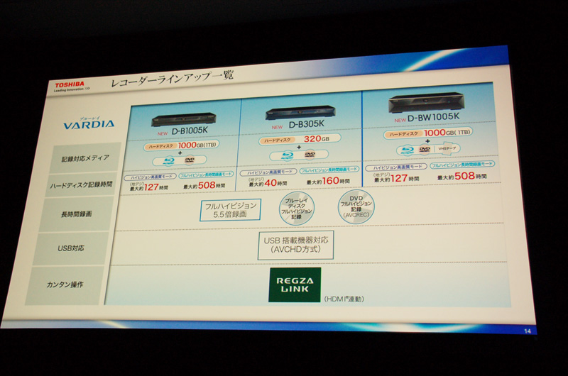 【更新】東芝・初のBDレコーダー“VARDIA”3機種を発表 − BDプレーヤーも登場
