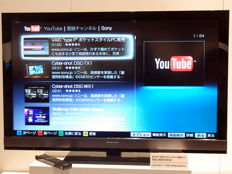 ネットビデオ機能「<ブラビア>ネットチャンネル」も発表