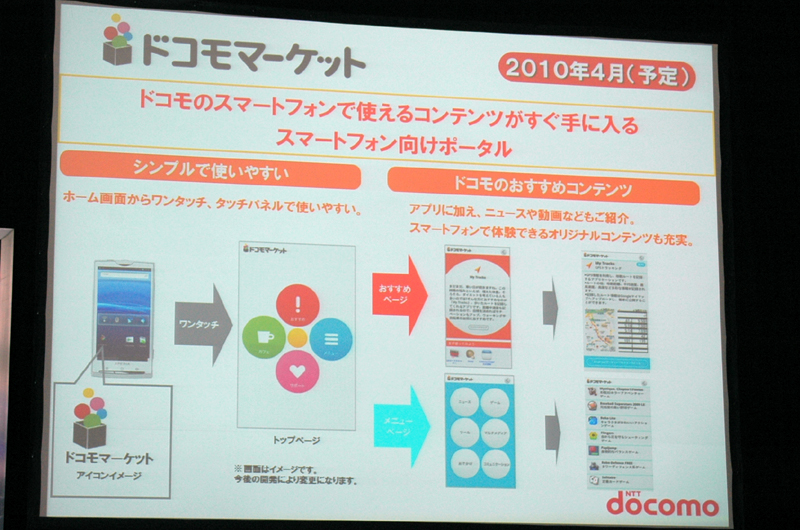 お薦めアプリやニュースなどの情報を配信する「ドコモマーケット」