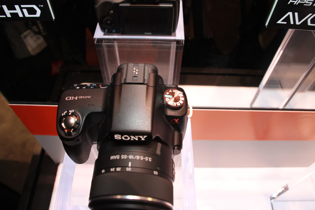 HOME > ニュース > AV&ホームシアターニュース 一眼レフと小型モデルの2ライン 【PMA2010】ソニーがついに動画対応一眼カメラを発表 − 年内に数機種を発売予定 会田肇 2010年02月22日 前の写真へ メインストリーム機の天面 前の写真へ この写真の記事へ 関連リンク PMA2010 公式サイト
