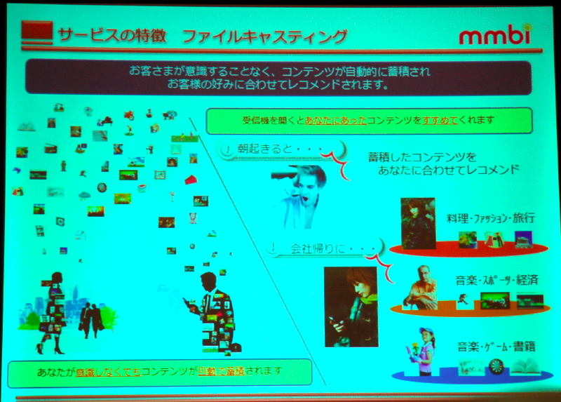 mmbi、携帯向け次世代サービスのデモを披露 − 1週間で300コンテンツの自動ダウンロードサービスなど発表