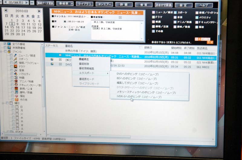 HOME > ニュース > AV&ホームシアターニュース Woooなどで録画した番組をPCで視聴可能に アイ・オー、PCでのiVDR-S視聴・配信を可能にする外付けアダプターを発売 ファイル・ウェブ編集部 2010年03月10日 前の写真へ PC用チューナーに同梱される録画・視聴ソフト「mAgicTV Digital」(ver 3.0以降)には「iVDR-Sへのダビング」というメニューが用意されている 前の写真へ この写真の記事へ 関連リンク 本件のニュースリリース