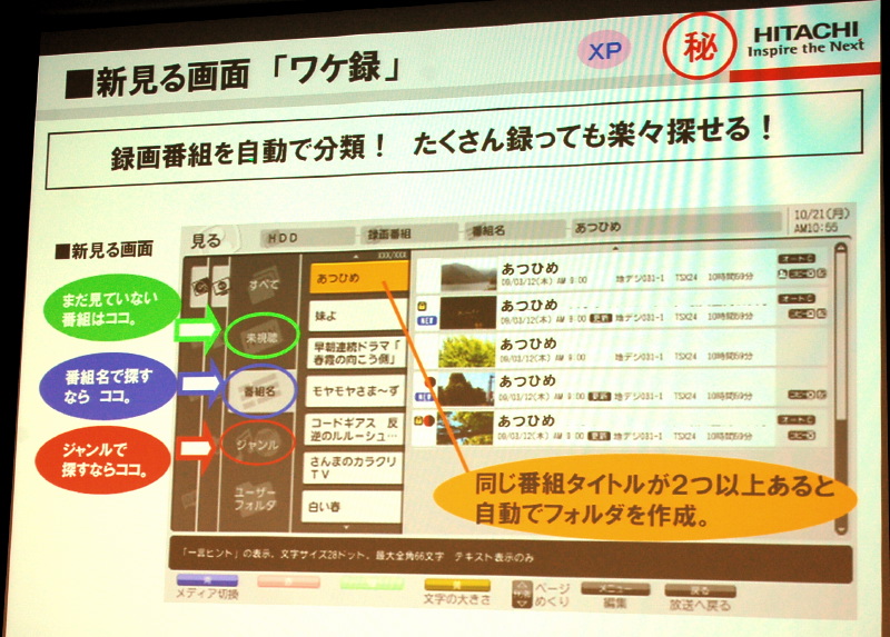 新機能「ワケ録」を搭載。番組名やジャンル、未視聴番組などを自動的にフォルダ分けしてくれる