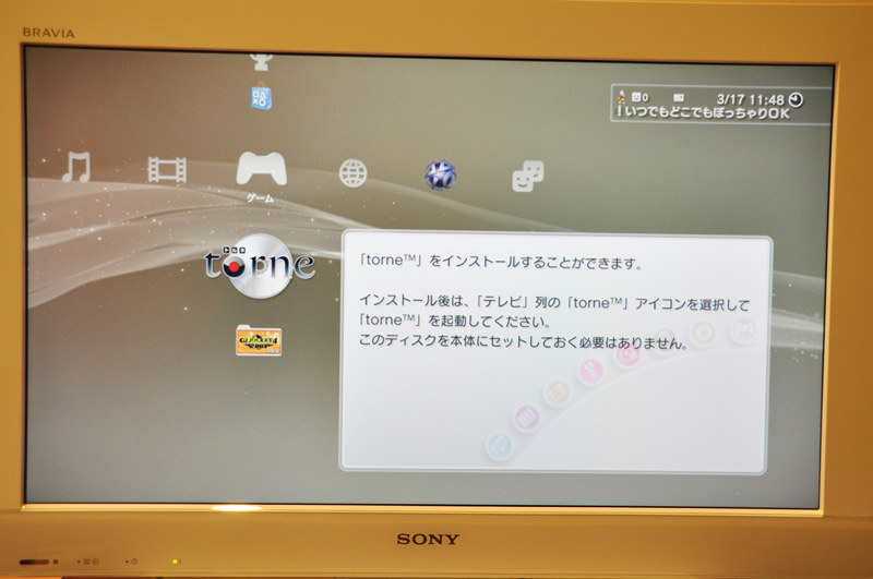 HOME > ニュース > AV&ホームシアターニュース 地デジの生放送を早速「視聴・録画」してみる 「torne」を発売日にゲットした! − ケースイが導入速報をお届け【セットアップ編・動画レポ付き】 レポート:鈴木桂水 2010年03月18日 前の写真へ 次の写真へ ディスクを挿入すると、インストールのメニューが起動する 前の写真へ 次の写真へ この写真の記事へ 関連リンク 「torne」公式サイト ソニー・コンピュータエンタテインメント