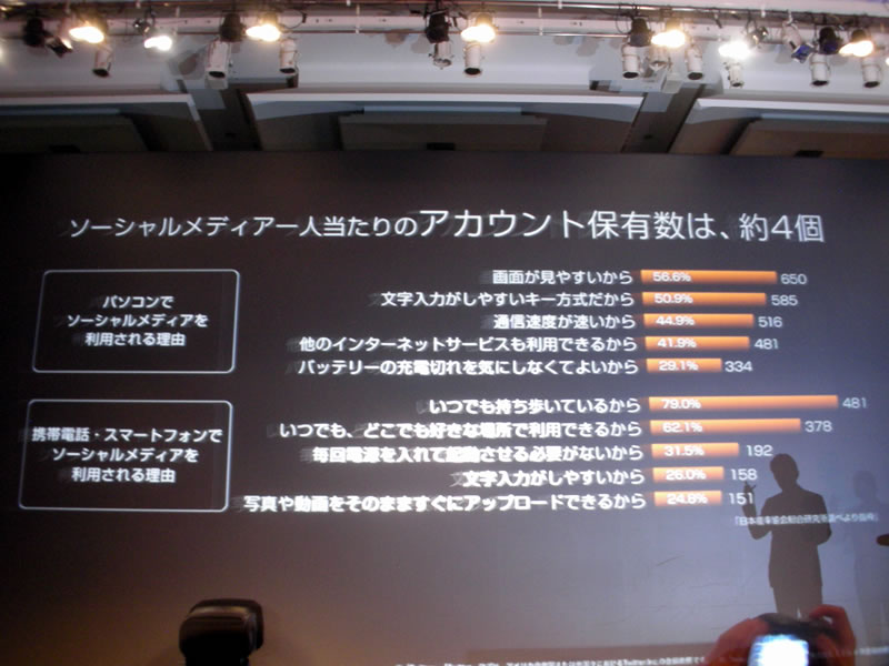 HOME > ニュース > AV&ホームシアターニュース スマートフォンながらワンセグなどにも対応 KDDI、auのスマートフォン“IS series”を正式発表 -シャープ製Android機と東芝製Win機の2機種 ファイル・ウェブ編集部 2010年03月30日 前の写真へ ソーシャルメディアではひとりあたり4個のアカウントを保有しているという 前の写真へ この写真の記事へ 関連リンク 本件の詳細 IS seriesスペシャルサイト