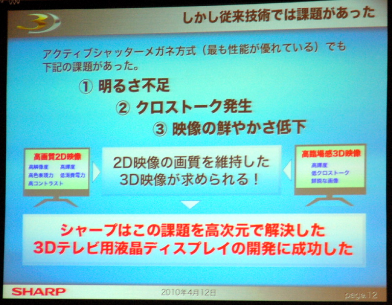 【詳報】シャープ、4原色パネル採用の3D液晶テレビを今夏発売