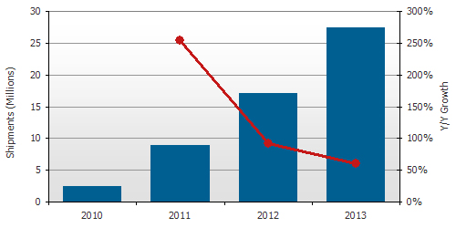2013年までの3D対応テレビ市場の成長予測