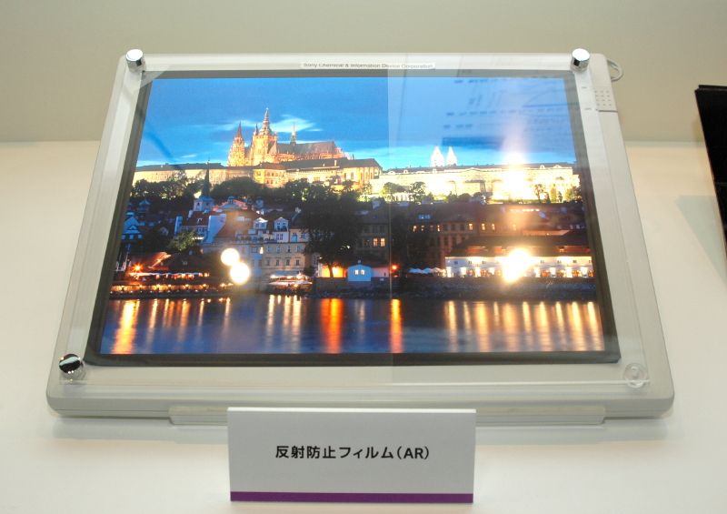 HOME > ニュース > AV&ホームシアターニュース 開発中のマルチタッチパネルなどを展示 【Display 2010】ソニー製品の“高画質”を支える部品・素材たち − ソニーC&Iブースを紹介 ファイル・ウェブ編集部 2010年04月14日 前の写真へ 次の写真へ 左部のみ反射防止フィルムを装着。その差は明らか 前の写真へ 次の写真へ この写真の記事へ 関連リンク ソニーケミカル&インフォメーションデバイス Display 2010