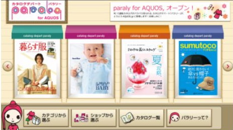 HOME > ニュース > AV&ホームシアターニュース HD画質を活かした新たな試み AQUOSで通販カタログが見られる新サービス、凸版印刷が開始 ファイル・ウェブ編集部 2010年04月19日 次の写真へ 「カタログデパート パラリー for AQUOS」トップページの画面イメージ 次の写真へ この写真の記事へ 関連リンク 凸版印刷 「カタログデパート パラリー」PC版 AQUOS 製品情報ページ