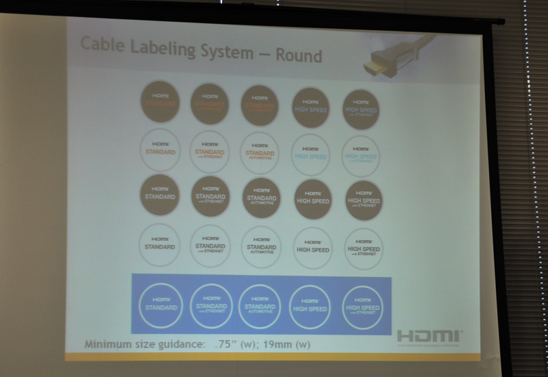 HOME > ニュース > AV&ホームシアターニュース HDMIケーブルのロゴ表示規定も提案 HDMIライセンシング、HDMIの最新規格開発状況と仕様表記ガイドラインの説明会を実施 ファイル・ウェブ編集部 2010年04月22日 前の写真へ 同じロゴの円形デザイン版 前の写真へ この写真の記事へ 関連リンク HDMI Licensing,LLC