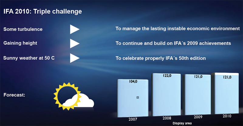 HOME > ニュース > AV&ホームシアターニュース “開催50回記念”のIFAは9月3日にベルリンで開幕 IFA2010の出展コンセプトが明らかに − アップル関連機器など集めた「IFA iZone」や「eBook」エリアを新設 ファイル・ウェブ編集部 2010年04月26日 前の写真へ 次の写真へ IFA2010のチャレンジ 前の写真へ 次の写真へ この写真の記事へ 関連リンク IFA2010日本語サイト IFA2010グローバルサイト