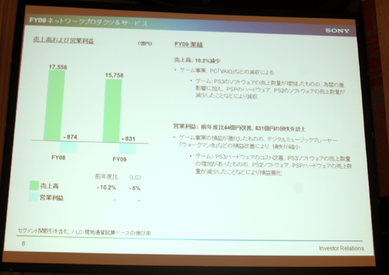 ソニー、2009年度決算を発表 − 今期は営業利益404%増の1,600億円を目指す