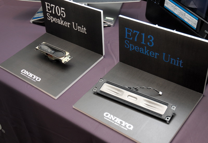 新E7シリーズに搭載したスピーカーユニット(手前)とこれまでのE7シリーズのユニットを比較