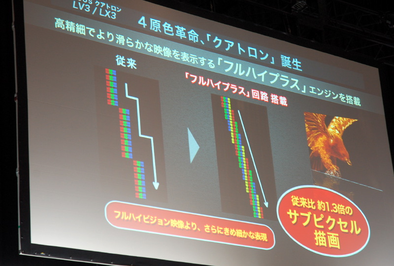 HOME > ニュース > AV&ホームシアターニュース 従来比約1.8倍の明るい3D映像を実現 【更新】シャープ、初の3Dテレビなど4原色パネル搭載「AQUOS クアトロン」を発売 ファイル・ウェブ編集部 2010年05月31日 前の写真へ 次の写真へ 「フルハイプラス」エンジンにより、サブピクセルの多さを有効活用することで高精細化を実現した 前の写真へ 次の写真へ この写真の記事へ 関連リンク シャープ AQUOS商品サイト シャープ クアトロンスペシャルサイト シャープ 3D技術解説サイト