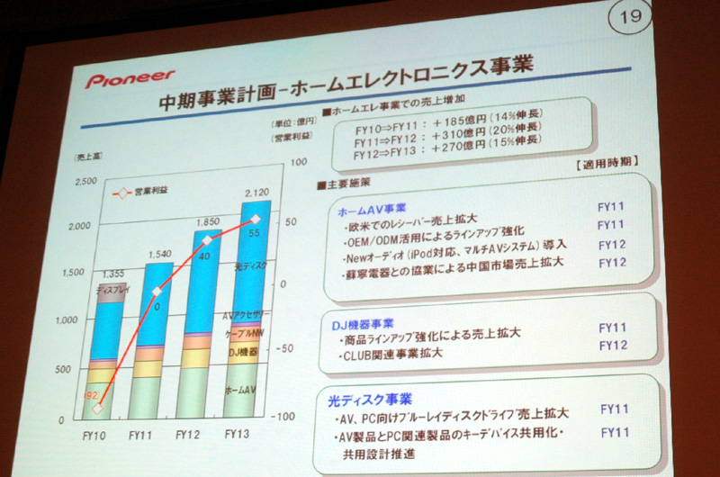 パイオニア、2013年度までの中期経営戦略を発表 − 売上6,300億円、純利益210億円まで回復を目指す