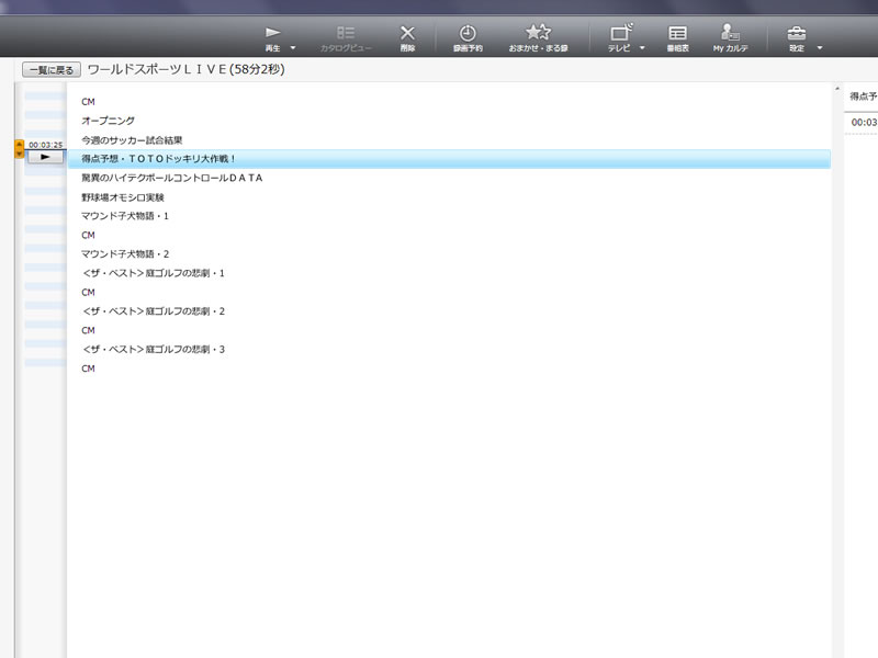 カタログビューの画面例。どんなコーナーが何分から始まったのかが分かる