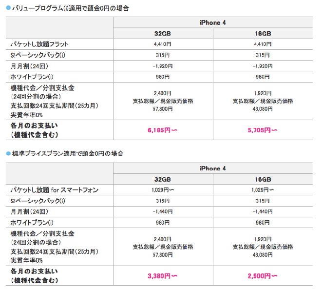 HOME > ニュース > AV&ホームシアターニュース 当初はブラックモデルのみ 「iPhone 4」予約販売は15日17時から − 16GBは実質0円で購入可能 ファイル・ウェブ編集部 2010年06月14日 iPhone 4の料金イメージ この写真の記事へ 関連リンク iPhone 4の料金プラン ソフトバンクモバイル iPhone 特設サイト ソフトバンクモバイル